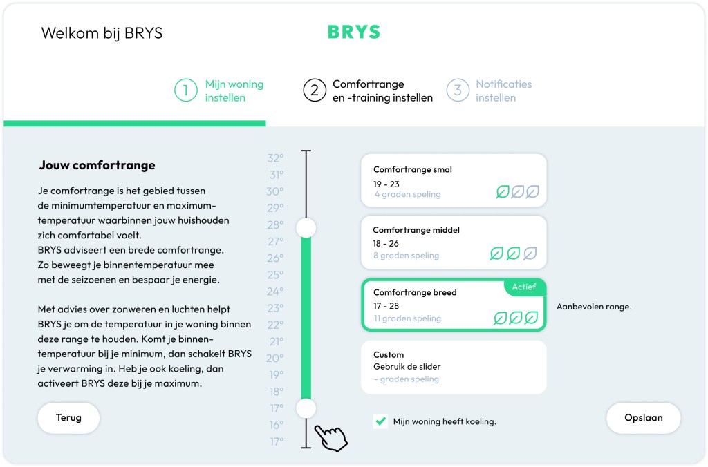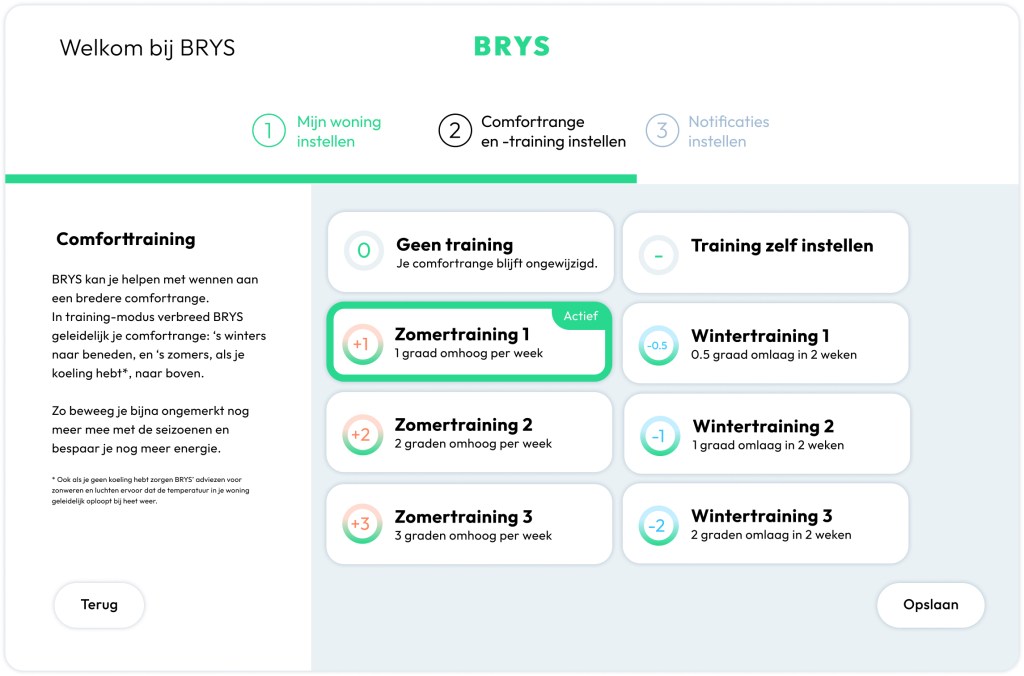De BRYS comforttraining helpt bewoners bij het vergroten van hun comfortrange. Onderzoek in de fysiologie toont aan dat mensen goed in staat zijn om zichzelf aan te passen aan veranderende temperaturen. BRYS helpt bewoners hierbij door de temperatuur in de woning geleidelijk omlaag – in het najaar/winter – of omhoog te brengen – in voorjaar/zomer.